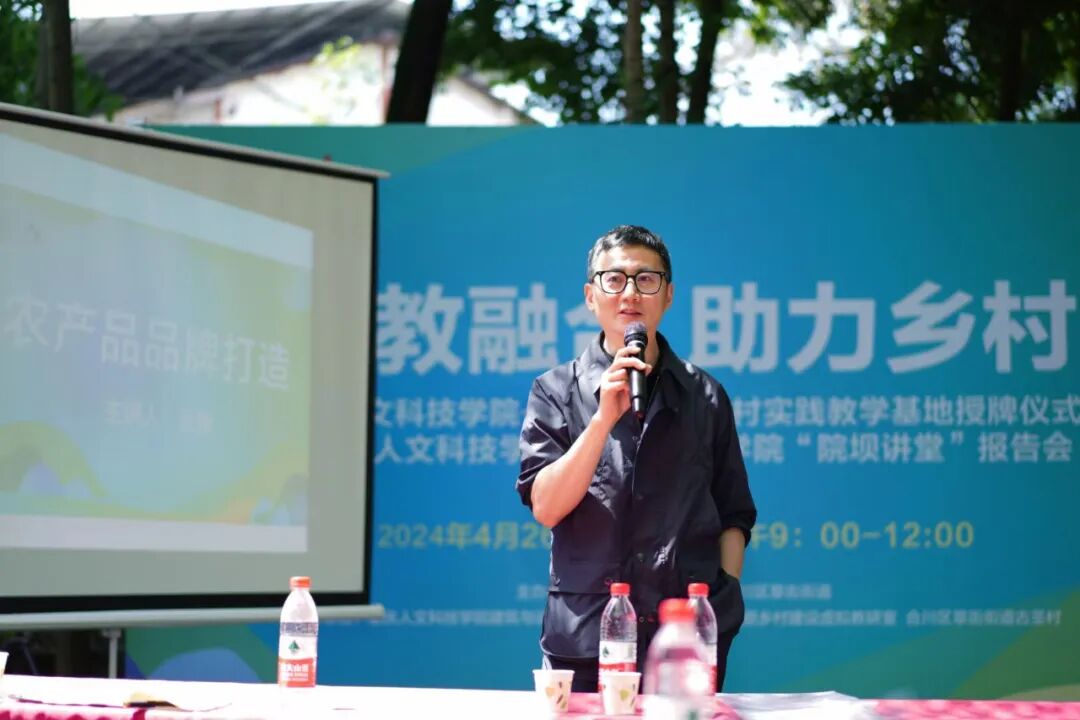建筑与设计学院院长张雄以《农产品品牌打造》为题,从农产品特色打造、如何合理定价、市场运营的技巧等角度出发,为现场师生、村民做了专题报告。