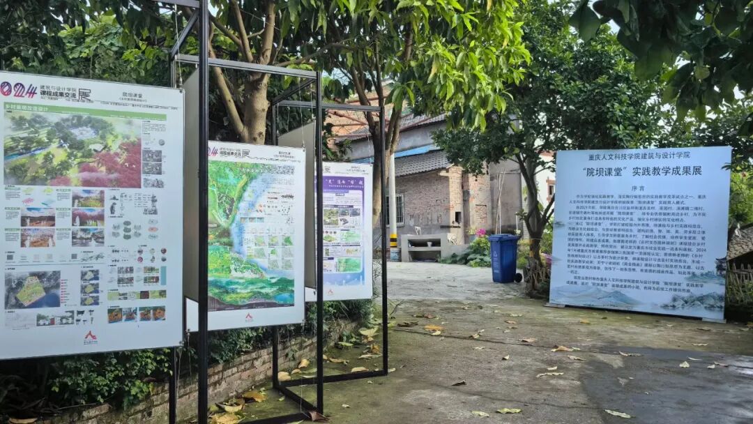 作为学校强化实践教学、落实陶行知思想的实践教学改革试点之一,重庆人文科技学院建筑与设计学院积极探索“院坝课堂”实践育人模式。自2021年起,学院就在合川盐井街道茶园村、草街街道古圣村、涞滩镇二佛村、官渡镇方碑村等地持续开展“院坝课堂”,将专业优势辐射周边乡村,为不同乡村地区量身打造具有特色的文化产品,强化乡村地区的文化特点。通过“院坝课堂”,学院打破校园内外界限,将课程与乡村实践相结合,与耕读文化相结合,与劳动教育相结合,建构起德、智、体、美、劳多层立体的实践育人体系,引导学生积极服务乡村,了解社会民情,培养学生爱家、爱国的情怀,形成众多成果。现在古圣村举办重庆人文科技学院建筑与设计学“院坝课堂”实践教学成果展,是对“院坝课堂”前期成果的小结,也将为后续工作提供思路。